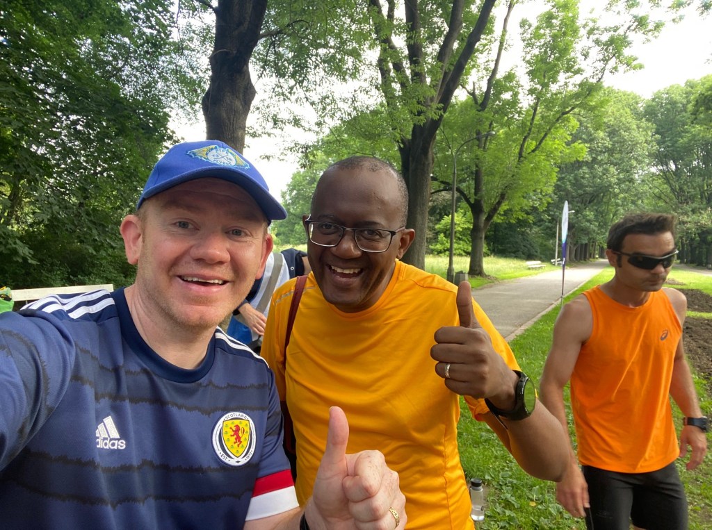 Saturday morning I wake up early with a rare, sensible thought to fuel and hydrate before heading out. Bananas, Haribo bears, a Mars bar and some water later and I’m walking back down toward the Nardowy which is a stone’s throw from the Park Skaryszewski, the location of the city’s 1st parkrun, Warszawa-Praga. It’s certainly the first time I’ve ever walked to parkrun past a nightclub that was still in full flow at 8am and I felt for the neighbours living upstairs from the clearly non-soundproofed venue. In hindsight, as nice as the walk was, I’m not sure I needed a 2 mile warm up in that heat, especially when I discovered the bus later in the day and it cost me the grand sum of 40p! I said hello and got my photo with the lovely volunteer team and spoke to a few fellow tourists from South Africa and Ireland. I’m not saying anything revelatory here, but the social side of parkrun is brilliant, you rock up to a park as a complete stranger and within a few minutes you get chatting to other runners. I ended up running with Ronan who was on holiday and we had a good blether about marathons and training as we ran round and I soaked up all the advice I could. I probably ran a bit quicker than I was intending (25.31) and it caught up with me later in the run, but I enjoy parkrun far more when I’m running with someone. A flat, potentially fast route of two and half loops with a nice long straight to finish…along with a wee bit of madeira cake to top up the fuel.