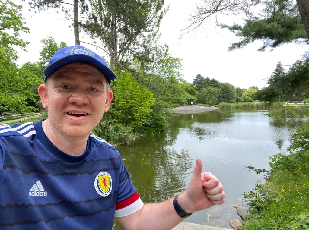 Waving goodbye to the team and runners in Skaryszewski park, another loop of the stadium (I’d go back later in the day for the full tour) and then south along the Vistula towards the Legia stadium that sits on the edge of the park. The heat along the river was brutal and I had to call on an emergency handful of congealed Haribo bears. Once in the park, the tree cover made it a bit easier although looking at the mile splits you can see me started to fade from 5 onwards. It certainly wasn’t conversational pace by the end so I know I’ll need to pace the longer runs better and I might need to stop trying to combine a parkrun into them, but I’ll see how it goes. There was a track beside the Legia sports centre, so a lap of that was added in, before taking in some of the landmarks of the park including the Chopin statue and finishing in the neighbouring Ujazdowski park to make sure Strava didn’t trick me out of my nine miles with an 8.9!
